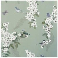 Material: Paper. Width: 53cm. Length: 10m. Design: Bird, Blossom, Butterflies. Design Repeat: 53cm. Easy Application, Offset Pattern Match, Paste the Paper. Finish: Matte, Smooth. | World of Wallpaper Mitzu Bird Wallpaper in Dark Grey