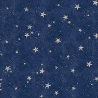 Material: Paper. Width: 52cm. Length: 10.5m. Design: Metallic, Stars. Design Repeat: 53cm. Easy Application, Offset Pattern Match, Paste the Paper. Finish: Matte. | Crown Starlight Stars Wallpaper in Navy