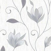 Material: Vinyl. Design: Floral, Glitter. Design Repeat: 25in. Finish: Matte, Metallic, Textured. Offset Pattern Match, Paste the Paper. | Envy Synergy Floral Textured Wallpaper in Mid Grey