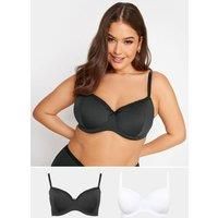 Add these staple bras from Yours Curve to your lingerie collection. Featuring wired cups for all-day support, this 2 pack is finished with lace trim detail, adjustable straps and a hook and eye fastening. Pair with briefs for a reliable everyday set. | Yours Women's 2 Pack Lace Trim T-Shirt Bras in Black | Size: 44DD - Manufacturers part numbers: Yours_5063110902836|613267