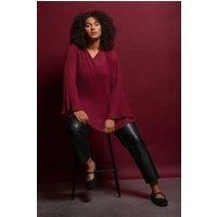Welcome this sophisticated blouse from Evans to your wardrobe. Crafted from a lightweight woven material, this blouse will allow you to move with freedom. It features a pleat design, frilled neckline, long flute style sleeves and a cami top insert. Style with your favourite tailored trouser and loafers for a smart-casual look. | Evans Women's Pleat Detail Blouse in Red | Size: 18 - Manufacturers part number: 813148