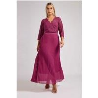 This Yours London Curve Pink Lace Wrap Pleated Maxi Dress comes in UK sizes 14-32 and features lace detailing, a v-neckline, a pleated skirt, 3/4 sleeves and a maxi length. Ideal for prom, wedding guest outfits and bridesmaid occasions, its made from a soft woven fabric and pairs perfectly with heels. | Yours Women's Lace Wrap Pleated Maxi Dress in Pink | Size: 16 - Manufacturers part numbers: Yours_5063111889686|818846