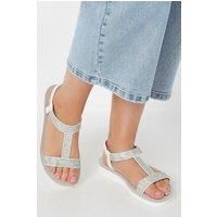 Make sure to pack these new-in Yours Curve diamante sandals in your suitcase this summer In a wide E fit, they feature a diamante embellished t-bar design, an open toe, and an elasticated heel strap. Simply pair with your go-to warmer weather outfits for the perfect finishing touch. | Yours Women's Diamante Strap T-Bar Sandals in White | Size: 5E - Manufacturers part numbers: Yours_5063111992140|829367