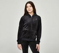 Juicy Couture Girls Diamante Full Zip Hoodie in Jet Black. Made from Juicy Couture£s signature plush velour fabric, this full zip fastening hoodie has just made your casual wardrobe£s £most wanted£ list. With a spacious 3-panel fixed hood, comfy rib cuffs and hem for a snug personalised feel, front split pouch pockets and THAT most eye-catching of branding; Juicy Couture£s diamante offerings to the left chest and back. Black Size - L/G