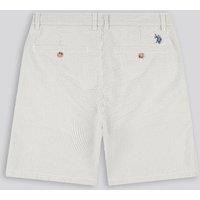 The U.S. Polo Assn. Seersucker Chino Shorts offer a perfect blend of comfort and sophistication. Crafted from lightweight, breathable seersucker fabric, these shorts keep you cool while adding a refined touch. With a classic fit, functional pockets, and signature branding, they're ideal for warm-weather outings. Pair with a polo or shirt for an easy, polished look. | U.S. POLO ASSN. Men's Seersucker Chino Short in Light Grey | Size: 32