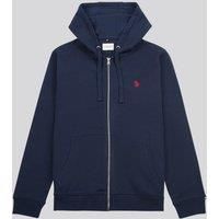 The U.S. Polo Assn. Double Horsemen Loopback Zip Hoodie combines breathable comfort with casual elegance. Crafted from soft loopback cotton, it features signature embroidery, a full-zip front, and an adjustable drawstring hood for versatile layering. A kangaroo pocket adds practicality, making it perfect for relaxed yet polished looks. | U.S. POLO ASSN. Men's Double Horsemen Loopback Zip Hoodie in Dark Navy | Size: Medium
