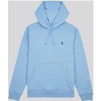 The U.S. Polo Assn. Double Horsemen Loopback Hoodie combines comfort and heritage style. Made from soft, breathable loopback cotton, this hoodie features the embroidered double Horsemen logo for a touch of authenticity. The adjustable hood and kangaroo pocket provide practicality, making it ideal for casual outings when paired with jeans or joggers. | U.S. POLO ASSN. Men's Double Horsemen Loopback Hoodie in Baby Blue | Size: Medium