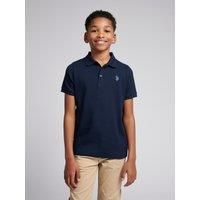 The 'Vertical Texture Polo Shirt' from U.S. Polo Assn. offers a timeless style with a contemporary edge. Featuring a refined vertical texture, a polished flat-knit collar, and the signature embroidered Double Horsemen logo, this polo is designed for both smart and casual looks. Soft cotton fabric provides breathable comfort, while the neat straight hem completes its versatile charm. | U.S. POLO ASSN. Men's Vertical Texture Polo Shirt in Dark Navy | Size: 14-15 Years