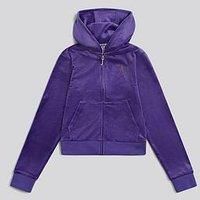Juicy Couture Girls Diamante Velour Zip Through Hoodie - Blue