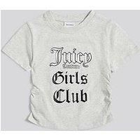 Juicy Couture Girls Slogan Short Sleeve T-Shirt Size & Fit Regular fit Available in sizes 7-8 years - 15-16 years Details Girls Slogan Short Sleeve T-Shirt by Juicy Couture Grey Short sleeves Crew neckline Branded slogan Ruched side detail Material & Care Material Content: 100% Cotton Washing Instructions: Machine Washable
