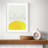 Invite the magic of the sun into your home with this stunning bird flock print by Kubistika. Published by East End Prints. Printed on high quality 210gsm acid free archival paper with a small white border in a white obeche frame. Overall size H61.4, W44, D2.2cm.Weight 1.35kg. Framed print. Rectangular. Hinge. Obeche wood frame included. EAN: 5063160233614.