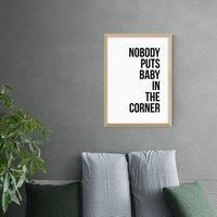 * Artwork by The Native State* Typographic style* Printed on 210gsm acid-free archival paper* Available in A1, A2, A3 & A4 size* Frames available: black, white and oak effect* You can buy the print unframed too! Nobody puts baby in the corner. Perfect for a minimalist home, this typographic quotes Dirty Dancing. You are able to customise the size and frame for this print! Choose from a variety of frame options and then pick your size. This way you can find the best design to suit your home interior. Eac... - Manufacturers part number: 30806141