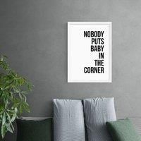* Artwork by The Native State* Typographic style* Printed on 210gsm acid-free archival paper* Available in A1, A2, A3 & A4 size* Frames available: black, white and oak effect* You can buy the print unframed too! Nobody puts baby in the corner. Perfect for a minimalist home, this typographic quotes Dirty Dancing. You are able to customise the size and frame for this print! Choose from a variety of frame options and then pick your size. This way you can find the best design to suit your home interior. Eac... - Manufacturers part number: 30806142