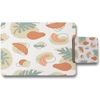 Add a touch of style to your table with this trend designer artwork placemat and coaster set perfect for any dining space. Durable, easy to clean, and ideal for everyday use. | Benjamin Tate Design line art & botanical elements placemat coaster set in Natural