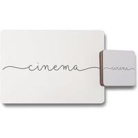 Add a touch of style to your table with this trend designer artwork placemat and coaster set perfect for any dining space. Durable, easy to clean, and ideal for everyday use. | Benjamin Tate Design text cinema placemat coaster set in Natural