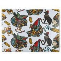 This glass chopping board showcases contemporary elegance with its vibrant colors and intricate designs. It serves as both a practical kitchen tool and a decorative piece, adding visual interest to your countertop. Made from high-quality, heat-resistant glass, it ensures durability and easy maintenance. Perfect for modern kitchens, this board brings a stylish and artistic flair to your meal preparation routine. | Benjamin Tate Design Queen Cleopatra History Glass Chopping Board in Natural