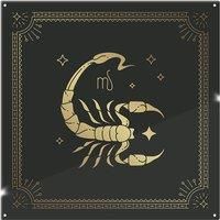 Elevate your kitchens ambiance with a splashback that exudes artistic flair, featuring vibrant and eye-catching colors. Made from toughened glass, it ensures durability and easy cleaning, ideal for active kitchens. The glossy surface reflects the latest design trends, adding a modern and elegant touch to your space. Whether you choose a bold geometric pattern or a minimalist design, this splashback becomes the highlight of your kitchen. | Benjamin Tate Design Zodiac Scorpio Horoscope In Black & Gold Din...