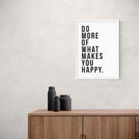* Artwork by The Native State* Typographic wording* Portrait orientation* Printed on 210gsm acid-free archival paper* Available in A1, A2, A3 & A4 size* Frame options: black, white and oak wood effect* Available in unframed option A simple statement, Do more of that makes you happy can bring motivation and purpose to your day. This typographic print from The Native State uses a Giclee printing process to prevent fading, so this artwork will remain fresh for years to come. Each design is available in fou... - Manufacturers part number: 30823452