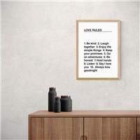 * Artwork by The Native State* Typographic style* Printed on 210gsm acid-free archival paper* Available in A1, A2, A3 & A4 size* Frames available: black, white and oak effect* You can buy the print unframed too! Love rules and so do the rules of love! Work them into your everyday by hanging them on your wall. You are able to customise the size and frame for this print! Choose from a variety of frame options and then pick your size. This way you can find the best design to suit your home interior. Each p... - Manufacturers part number: 30823463