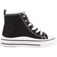 Childrens Juniors Lace Up High Top Canvas Trainer with Platform Sole. Sizes: UK Child 2 - 5. Canvas Uppers with Rubber Toe Cap. Canvas Inners with Padded Insole for Extra Comfort. Hardwearing Chunky Durable Platform Sole. Lace Up Fastening with Pull On Back Tab | ABSOLUTE FOOTWEAR Women's Childrens Juniors Lace Up High Top Canvas Trainer, Platform Sole in Black | Size: 5