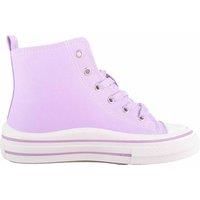 Childrens Juniors Lace Up High Top Canvas Trainer with Platform Sole. Sizes: UK Child 2 - 5. Canvas Uppers with Rubber Toe Cap. Canvas Inners with Padded Insole for Extra Comfort. Hardwearing Chunky Durable Platform Sole. Lace Up Fastening with Pull On Back Tab | ABSOLUTE FOOTWEAR Women's Childrens Juniors Lace Up High Top Canvas Trainer, Platform Sole in Lilac | Size: 4