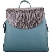 Womens Smooth Genuine Leather Backback Rucksack with Snakeskin Flap Panel. Sizes: Length 24cm x Height 23cm x Depth 11cm approx. Fold Over Flap with Magentic Popper. 1 Main Compartment with Zipper Fastening. 1 Zipped Pocket Inside and 1 Open Pocket on the Front. 1 Zipped Pocket on the Back. 1 Top Carry Handle. 2 Adjustable Shoulder Straps. Made from Genuine Soft Leather with Polka Dot Cotton Lining.