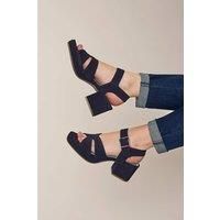The Araniko sandal is made for all-day (or night) wear! Featuring a cushioned platform sole and a flattering block mid-heel, it adds style and comfort to any outfit. Crafted from a soft suede or leather option, with a fun floral pattern underfoot, this retro-inspired sandal with a square toe design makes a bold, confident statement. | Moshulu Women's 'Araniko' Chunky Heel Sandals in Indigo | Size: 5 - Manufacturers part number: Moshulu_5063206026118