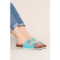 Crafted from soft, vibrant leathers, the Danube 2 adds a pop of joy to your everyday wardrobe. Its contoured, cushioned cork footbed and lightweight sole ensure all-day comfort while keeping you stylish effortlessly. | Moshulu Women's 'Danube 2' Leather Cork Footbed Mule Sandals in Bright Blue | Size: 8