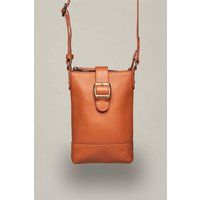 A compact, soft-leather cross-body pouch with contrast details and an adjustable strap for a comfortable fit. Featuring a secure popper, faux buckle, and printed cotton lining, it combines style and practicality for sunny days and city adventures. | Moshulu Women's 'Tinto' Phone Pouch Bag in Orange - Manufacturers part number: Moshulu_5063206062789