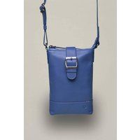 A compact, soft-leather cross-body pouch with contrast details and an adjustable strap for a comfortable fit. Featuring a secure popper, faux buckle, and printed cotton lining, it combines style and practicality for sunny days and city adventures. | Moshulu Women's 'Tinto' Phone Pouch Bag in Bright Blue - Manufacturers part number: Moshulu_5063206078070