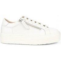 Jones The Bootmaker Amalia Flatform Trainer Size & Fit True to size - order your usual size Standard fit Available in sizes 3 - 8 Heel height: 4 cm Details Amalia Flatform Trainer by Jones The Bootmaker White Lace-up fastening Premium leather upper Leather lining Platform sole Material & Care Material Content: Leather Cow Upper, Leather Cow Lining, SYNTHETIC Sole Washing Instructions: Wipe Clean