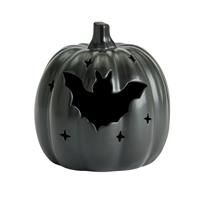 Go batty for Halloween. This glossy black ceramic pumpkin is set to scare with spooky cut-outs and a built-in glow - no carving required. Pop it on your doorstep, windowsill or table to dial up the gothic mood. Bring on the Halloween drama. Size H17, W17, D17cm. Contains Bat Ceramic Pumpkin. Battery powered. Requires 2 x AAA batteries(included). Requires 1xLED bulbs (not included). Suitable for indoor use. Manufacturers 1 year guarantee. EAN:5063225183496.