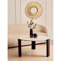 Interiors By Premier Palermo Marble Top Coffee Table This round coffee table has a white marble top in a smooth finish, offering a touch of luxury to the living room. Crafted from black finish acacia wood, its sturdy legs create a striking and visually appealing design, making this monochromatic coffee table a perfect focal point for modern living rooms. Assembly: Self Assembly Depth: 89 CM Height: 46 CM Material Content: Wood/Stone Width: 89 CM Table Type: Coffee White marble top Monochromatic accent C...