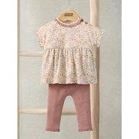 Mamas & Papas Baby Girls 2 Piece Ditsy T-Shirt & Legging Set - Pink