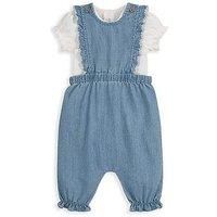 Mamas & Papas Baby Girls 2 Piece Chambray Dungarees & Bodysuit Set - Blue