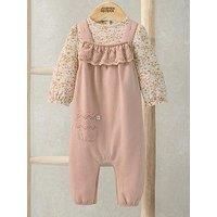 Mamas & Papas Baby Girls 2 Piece Broderie Dungarees & Bodysuit Set - Pink