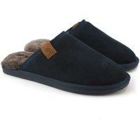 Upper: Suede. Lining: Sheepskin. Insole: EVA. Contrast Tab, Lightweight. Flat. Design: Tipped. Toe Style: Round. Style: Mules. Fastening: Slip-on. | Eastern Counties Leather Men's Tipped Sheepskin Slippers in Navy | Size: 7