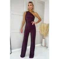 This Plum One Shoulder Shimmer Jumpsuit is perfect for a girls night out! Featuring one shoulder detail, fitted waist, and ruched detailing predominately on the side which make the jumpsuit a super flattering fit! Also has a a zip up back. Pair with some strappy heels, a clutch and some statement earnings. Model wears: UK 8/ EU 36/ US 4 Model's height: 165cm/ 5'5" Approx length from centre back to hem: 150cm Fabric composition: 95% Polyester 5% Elastane Colour: PLUM | AX Paris Women's Plum One Shoulder Shimmer Jumpsuit | Size: 16 - Manufacturers part number: AX Paris_5063259037277