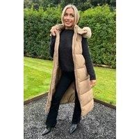 Feel cosy this winter in our Biscuit Faux Fur Hooded Longline Padded Gilet. Featuring a sleeveless design, a super soft beige faux fur hood with removable trim, all over padding, a double sided front zip and front pockets. Simply pair it with your favourite outfits to keep warm and on trend this season. Model wears: UK 8/ EU 36/ US 4 Model's height: 165cm/ 5'5" Approx length from centre back to hem: 110 cm Fabric composition: 100% Polyester Colour: BISCUIT | AX Paris Women's Biscuit Faux Fur Hooded Longline Padded Gilet in Brown | Size: 8