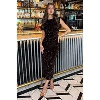 Get ready to steal the spotlight in our Chocolate Velvet Sequin Round Neck Midi Dress. This festive wardrobe staple features all over velvet sequin fabric, full lining, a fitted silhouette, a round neck, cap sleeves with shoulder pads, a zip-up back and a midi length skirt with a side split . Pair it with some heels and your favourite accessories for the perfect Christmas party look. Model wears: UK 8/ EU 36/ US 4 Model's height: 173cm/ 5'8" Approx length from centre back to hem: 130 cm Fabric composition: 100% Polyester Colour: CHOCOLATE | AX Paris Women's Chocolate Velvet Sequin Round Neck Midi Dress | Size: 16