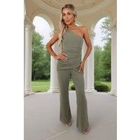 Our Light Khaki One Shoulder Draped Waist Jumpsuit is the perfect alternative to a dress. Crafted from our stunning stretch-jersey fabric with lining, this jumpsuit features a one shoulder top, a draped waist detail with ruching, full length wide leg trousers and a side zip closure. Pair it with heels and your favourite accessories for a glam event look! Model wears: UK 8/ EU 36/ US 4 Model's height: 165cm/ 5'5" Approx length from top of shoulder to hem: 150 cm Fabric composition: 95% Polyester, 5% Elastane Colour: LIGHT KHAKI | AX Paris Women's Light Khaki One Shoulder Draped Waist Jumpsuit | Size: 8 - Manufacturers part number: AX Paris_5063259290184