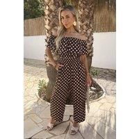 Get this AX Paris Women's Chocolate Polka Dot Bardot Frill Culotte Jumpsuit | Size: 14 from Debenhams for only £50.00. We found this offer 5 days ago, so hurry whilst stocks last!