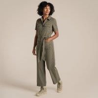 Insect-repellent jumpsuit from Craghoppers. The button-down styling gives Camila a classic travel feel, while the construction including 5 useful pockets, tie waist and roll-up sleeves make it a practical choice. The sun-protective fabric dries quickly and is cool and comfortable in sticky conditions, while the plant-based NosiLife insect-repellent and odour-elimination tech wards off midges and mossies. - Manufacturers part number: Craghoppers_5063260103213
