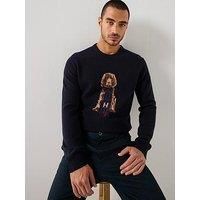 Hackett Heritage Harry Dog Crew Knitted Jumper Size & Fit True to size - order your usual size Regular fit Available in sizes S - 3XL Details Heritage Harry Dog Crew Knitted Jumper by Hackett Navy Knitted with dog design on front Crew neck Long sleeves with ribbed cuffs Ribbed hem Material & Care Material Content: 100% MERINO WOOL