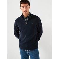 Hackett Lambswool Half Zip Knitted Jumper Size & Fit True to size - order your usual size Regular fit Available in sizes S - 3XL Details Lambswool Half Zip Knitted Jumper by Hackett Navy Knitted with lambswool Half zip Long sleeves with ribbed cuffs Ribbed hem Material & Care Material Content: 100% LAMBSWOOL