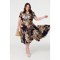 Stay comfortable and stylish in this midi dress. It's made from soft 100% viscose fabric that will stay breathable, even on a hot day. It has short sleeves, a v-neck, pockets and a shirred waistband that will flatter all figures. Dainty buttons add an elegant finishing touch. Style it alone or layer up with knitwear on a chilly day. | Izabel London Women's Floral Print Short Sleeve Midi Dress in Blue | Size: 14 - Manufacturers part number: Izabel London_5063282129840