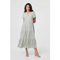This stylish midi dress has a smocked shape, with a relaxed fit and tiered skirt. It has short sleeves and a v-neck, for a tummy-flattering look that will slim your bust. It's also made from 100% viscose to keep you comfortable and cool. Style with your favourite sandals for an elegant sunny day outfit. | Izabel London Women's Printed Short Sleeve Relaxed Midi Dress in Green | Size: 8 - Manufacturers part number: Izabel London_5063282221612