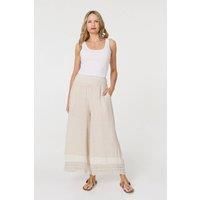 Add a sparkly finishing touch to your outfit with these wide leg trousers. They have pockets, a lace trim and a stretchy high waist fit. The hems are decorated with sequin details and semi sheer lace for a glamorous look. | Izabel London Women's Sequin Embellished Wide Leg Trousers in Beige | Size: Medium - Manufacturers part number: Izabel London_5063282243263