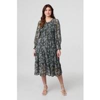 This elegant dress is made from semi sheer materials for a flattering and feminine look. It also has a shirred bodice, a round neck and long puff sleeves. The skirt is layered and tiered, with a floaty texture that looks beautiful whether you are dressing it up with heels or down with boots. | Izabel London Women's Floral Semi Sheer Smocked Midi Dress in Green | Size: 18 - Manufacturers part number: Izabel London_5063282338730
