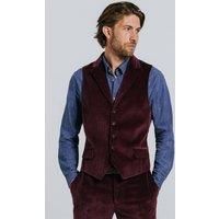 Dobell Mens Burgundy Corduroy Waistcoat Regular Fit 100% Cotton Notch Lapel-XL (46-48in)
